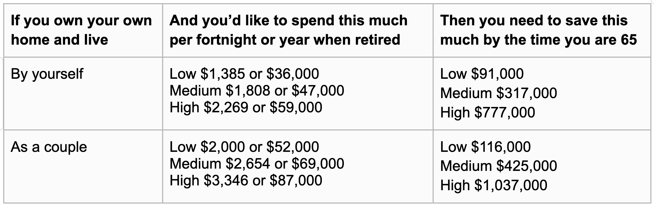It’s the amount of money you need in your superannuation (or investments outside of super) – in addition to owning your home outright – to comfortably hang up your work boots and financially retire.