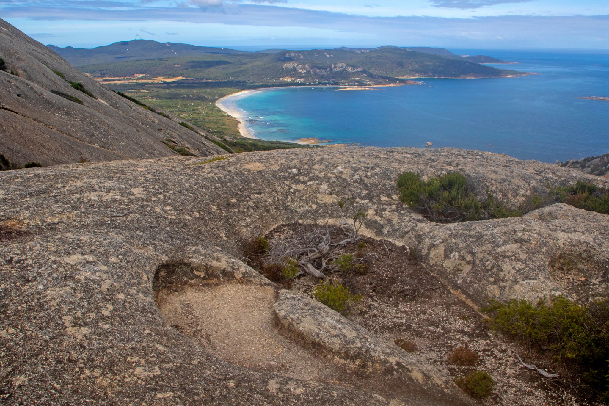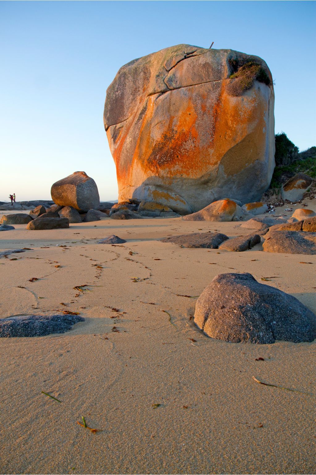 The climb’s gentler companion piece is the short walk around Trousers Point, a love handle on the hip of the island. At the walk’s start is the tiny beach that forms Flinders' most famous scene, with boulders strewn across the headlands like knuckle bones, and the Strzelecki Peaks rising in a wall just behind the shores.