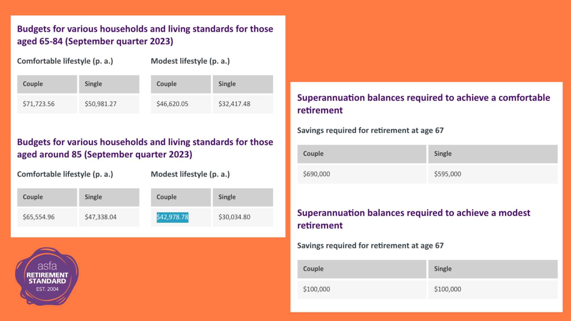 SOURCE: Association of Superannuation Funds of Australia, September 2023 - check ASFA for the latest and most up to date figures