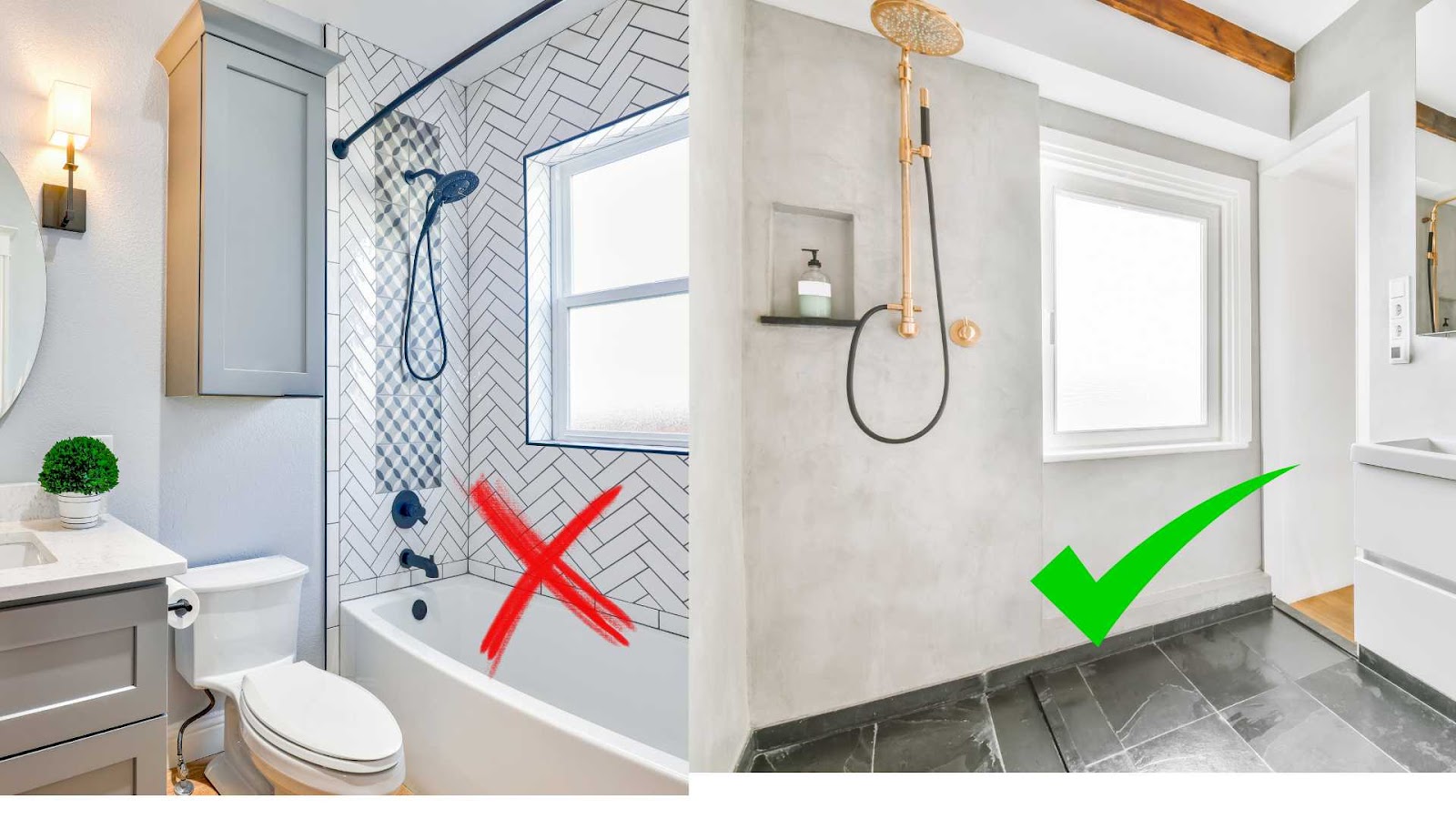 “Fibreglass shower bases [with hobs you have to step over] are a nightmare because you can't really do anything to them without getting expensive equipment or modifications,” says Brianah. “Walk-in showers with a completely level entry are best, or with as small of a threshold as possible so you can put a ramp up against it.”