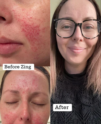 This strategy worked wonders for Kaia Mus, who thought she’d tried every treatment under the sun for her rosacea, but nothing worked and her quality of life was suffering. It wasn’t until she joined Zing Wellbeing’s holistic health program – which focuses on a wholefood diet rich in fibre, probiotics, polyphenols, and healthy fats – that she started to see improvements in her skin.