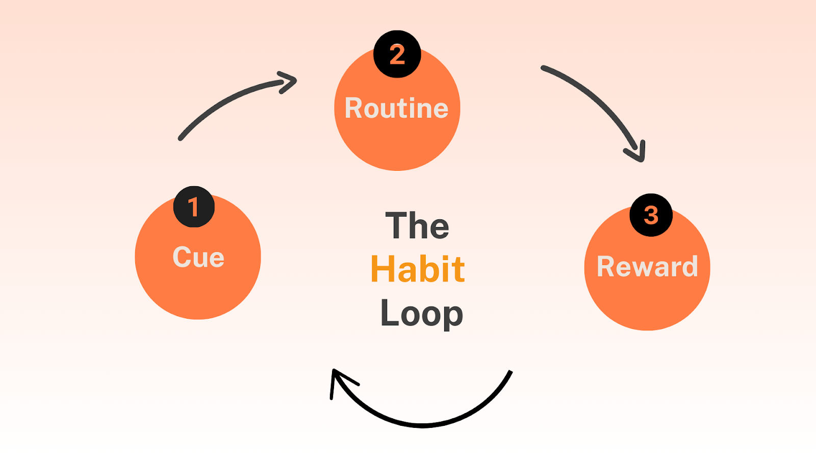 “We all learn habits through a simple process of cue, routine and reward,” says Dr Jud. “The cue is what triggers the habit, the routine is the cycle of behaviours involved in the habit, and the reward is the outcome that makes us repeat the cycle again.”