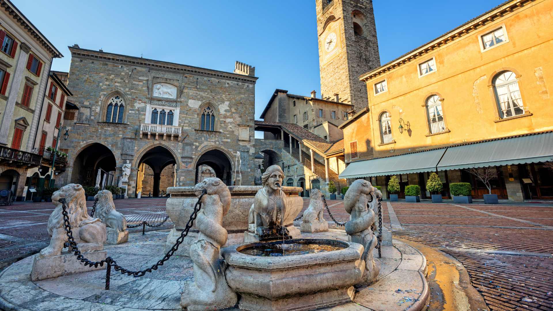Bergamo is a tale of two cities. Città Alta, or upper town, is the medieval heart of the city and strolling the perfectly preserved walls (built in 1561 by the Republic of Venice) is a romantic way to watch exquisite Lombardy sunsets. The upper town drips in history and the ornate Venetian touch is everywhere. Piazza Vecchia showcases this best, with elaborate fountains and grand palazzos guarded by fierce lions. The square particularly brims with life every evening when locals gather for la passeggiata and aperitivo.