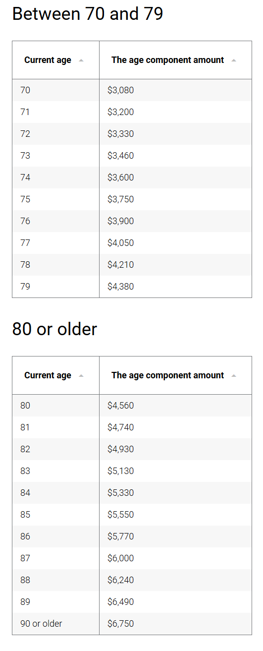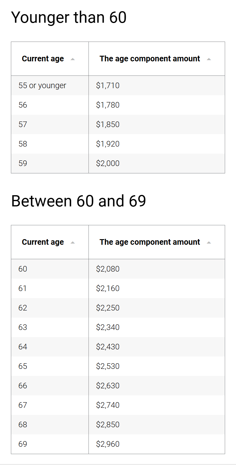 To work this out, Services Australia multiplies your security value down to the nearest $10,000. Then it divides it by 10,000 and multiplies that by the age component amount.