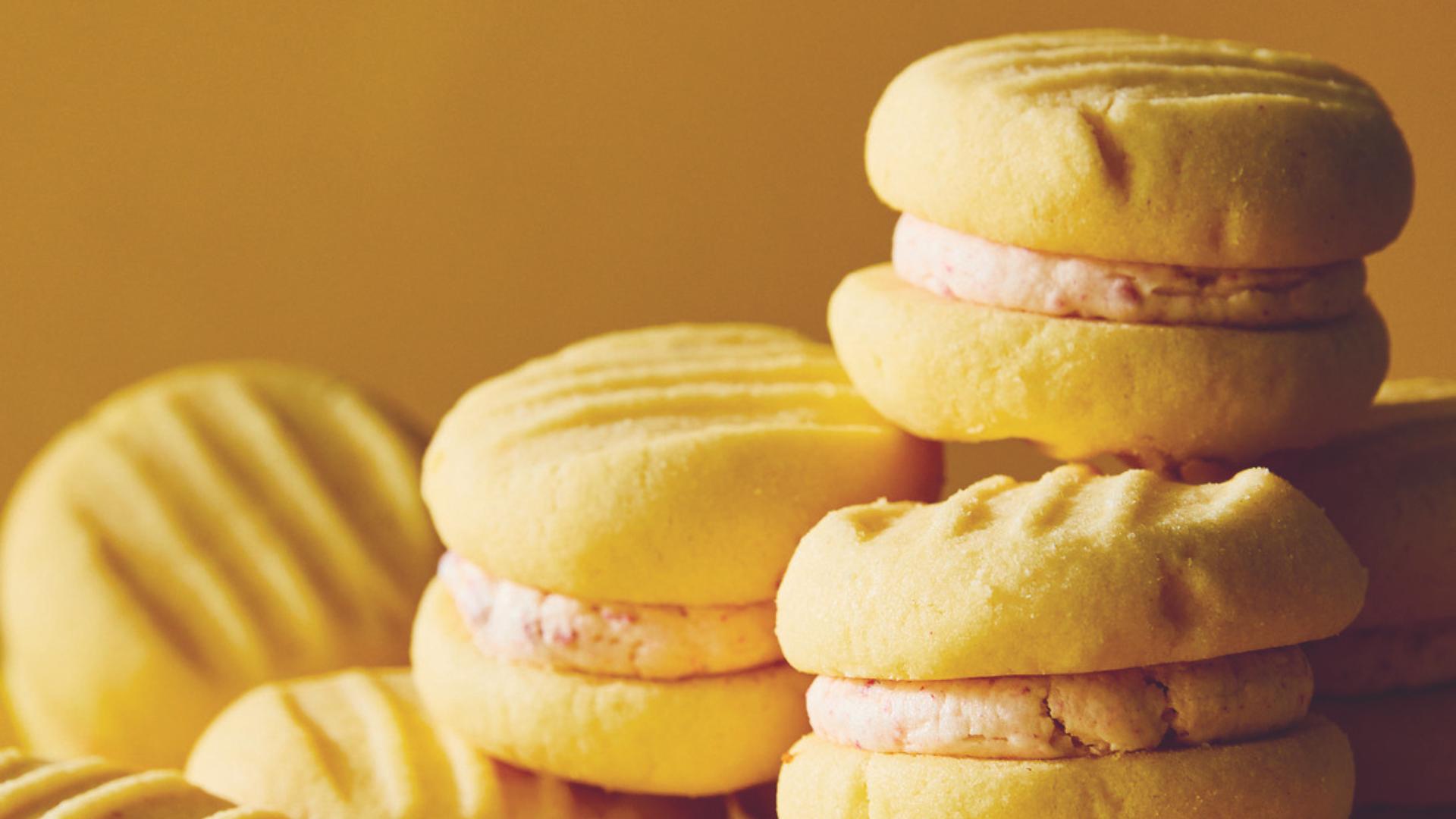 A nostalgic childhood classic, the melting moment is traditionally a custard-flavoured shortbread-style cookie that’s sandwiched with vanilla buttercream (or passionfruit buttercream if you’re feeling fancy).