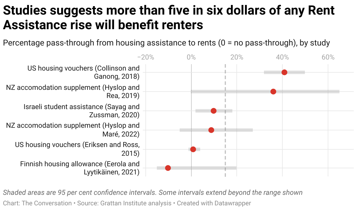 In Australia, there’s little evidence that recent increases in Rent Assistance have pushed up rents.