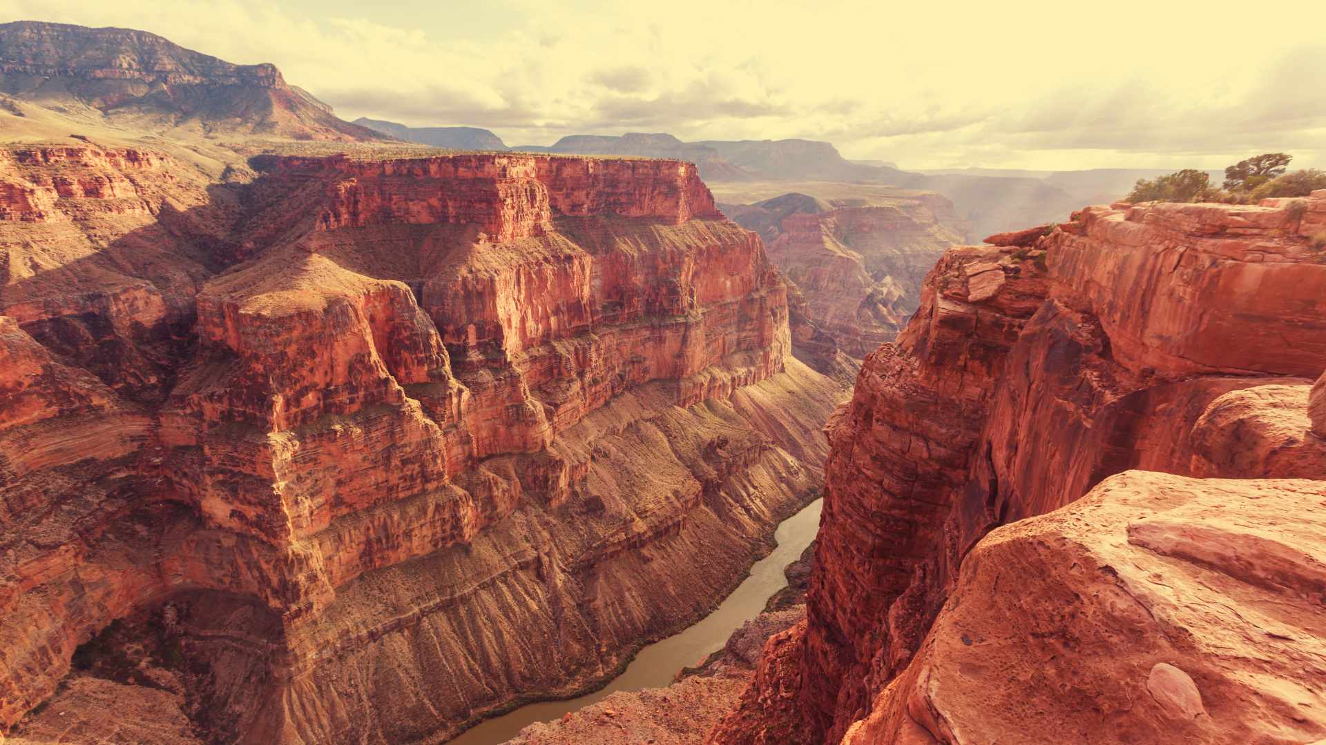 The south rim of the Grand Canyon is our final national parks destination. Measuring 445 kilometres long, up to 29 kilometres wide, and over a kilometre deep, it’s one of the biggest canyons in the world, only possible to take in completely from a rocketship about 35 kilometres above the Earth.
