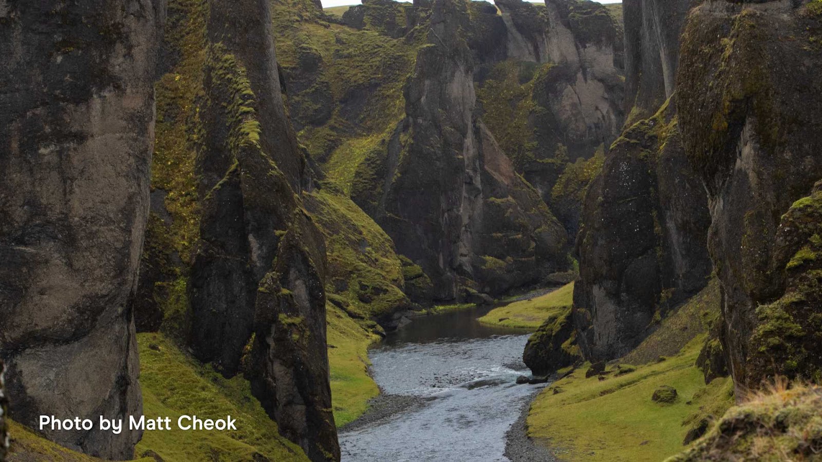 Carved by glaciers, the Fjaðrárgljúfur Canyon plunges a breathtaking 100 m below.